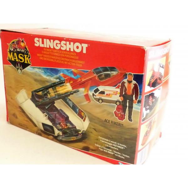 Find the Slingshot vehicle of the brand Kenner with its pilot, Ace Riker, from M.A.S.K.