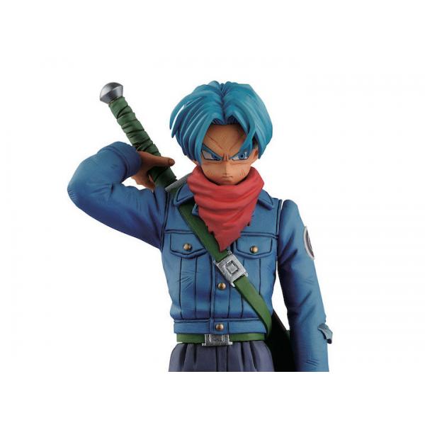 Find here, in the DXF-The Super Warriors collection, the statuette of Trunks, son of Vegeta and Bulma, plus the accessories to be able to present it worthily.
