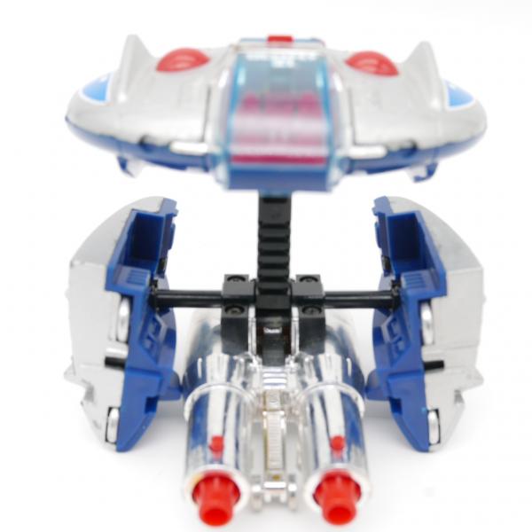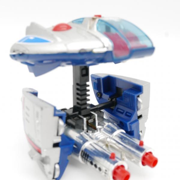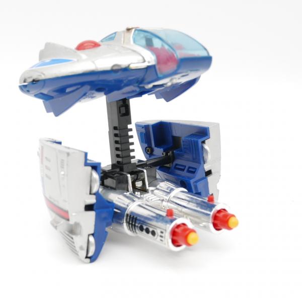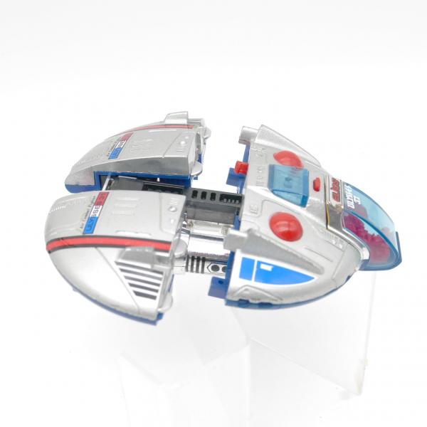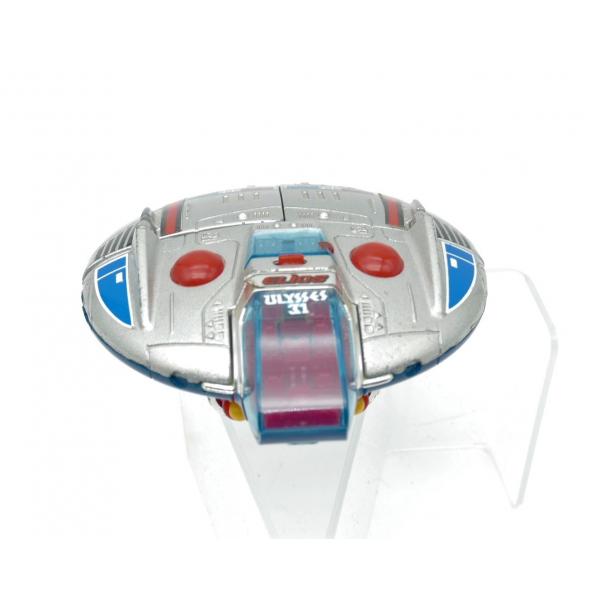 Produit en bon état pour l'âge. Les missiles sont présents, l'éjection de ces derniers est fonctionnelle. Les articulations du vaisseaux fonctionnent correctement. Quelques très légers manques de peinture.
