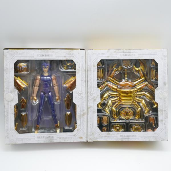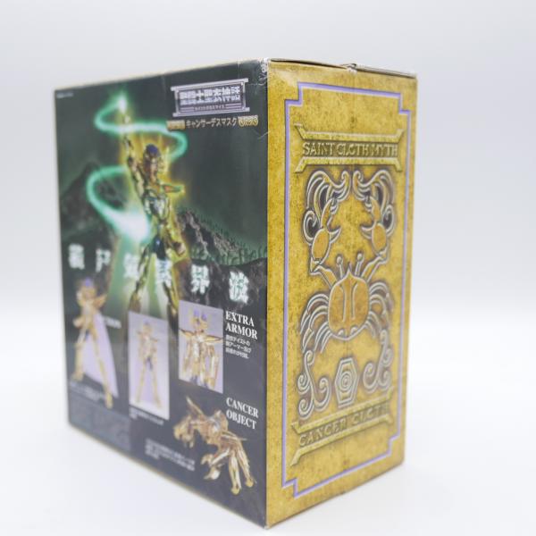 Retrouvez ici le chevalier d'or Masque de mort du cancer (Cancer deathmask), en très bon état, complet avec sa boîte, protection plastique transparente et de nombreux accessoires.
