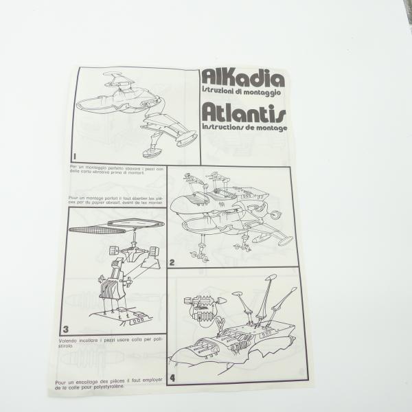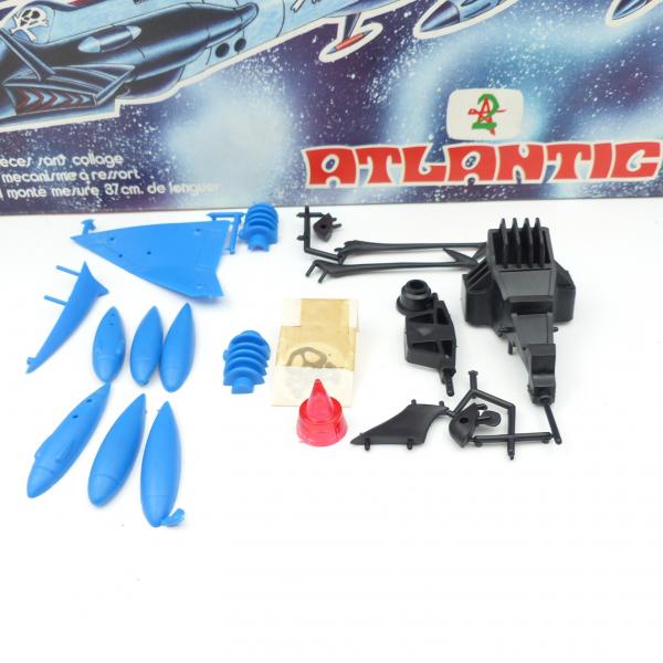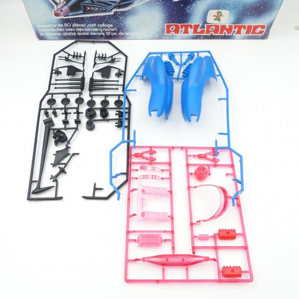 Retrouvez grâce à la marque Atlantic l'arcadia du captain harlock, dans sa boîte, le tout en parfait état. Un bonne partie des pièces est encore grappée. L'autocollant est lui aussi présent, idem pour la notice qui fait de ce jouet vintage une perle très rare!!!