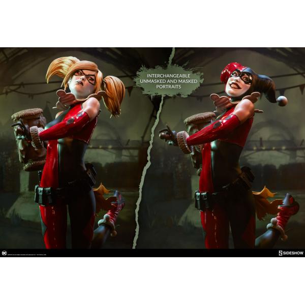 Extrêmement fidèle à l'expression du visage de cette parano légendaire, cette pépite de chez Sideshow et ses accessoires, devrait ravir tous les plus grands geeks de la femme la plus folle de chez DC! Un Must Have!