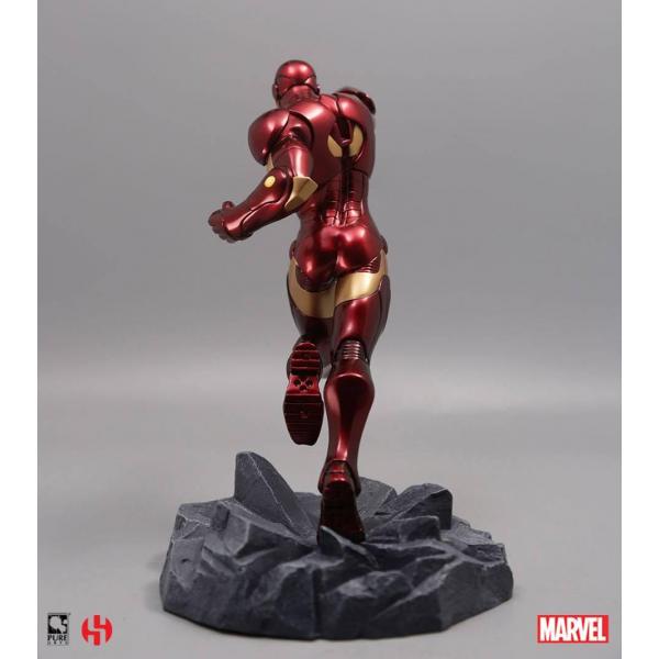 Ici, nous retrouvons Iron man, super héro précurseur de l'histoire des Avengers, en pleine action, prêt à user de ses répulso rayons. Cette Statuette est issue du comics des années 2000, tournant notoire de l'histoire Marvel à savoir civil war. L'armure de Tony Stark aka Iron man et son design sont parfaitement respectés.