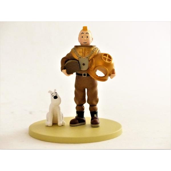 Cette figurine en plastique aux éditions Moulinsard est inspirée des personnages d'Hergé, Tintin et Milou et plus particulièrement de l'album "Le trésor de Rackham le rouge". Cette version de Tintin est un import chinois, donc plus rare que la version française ( voir étiquette photo 3)