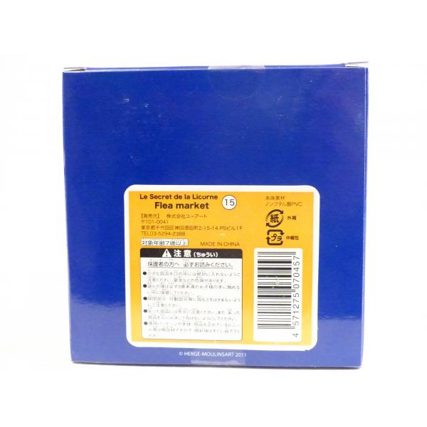 Cette figurine en plastique aux éditions Moulinsard est inspirée des personnages d'Hergé, Tintin et Milou et plus particulièrement de l'album "Le secret de la licorne". Cette version de Tintin est un import chinois, donc plus rare que la version française ( voir étiquette photo 3)