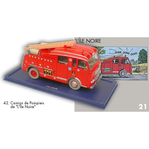 Le camion de pompier (N°42) de la série "En voiture tintin" est fidèle aux dessins de l'album "L'île noire". Il est conçu dans des matériaux de bonne qualité. Il est en métal et plastique injecté,toutes les pièces sont peintes à la main.
