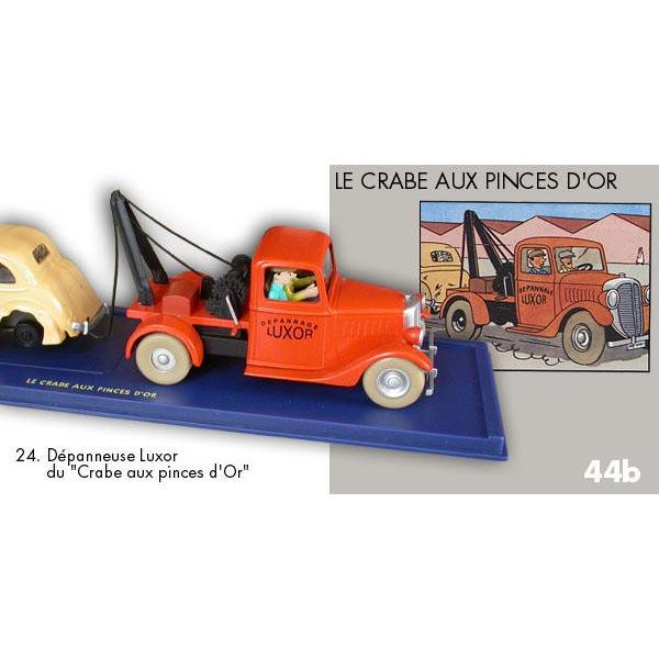 La dépanneuse Luxor & la voiture accidentée(N°23 &24) de la série "En voiture tintin" est fidèle aux dessins de l'album"Le crabe aux pinces d'or". Il est conçu dans des matériaux de bonne qualité. Il est en métal et plastique injecté,toutes les pièces sont peintes à la main.