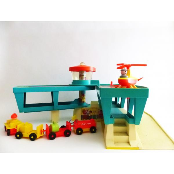 Airport play family est dans un très bon état de conservation, contenant des pièces difficiles à trouver comme certains personnages de l'avion ou les voitures doubles.