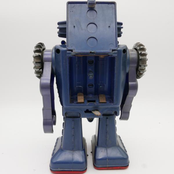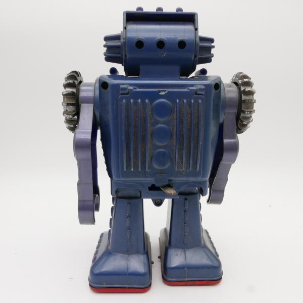 Robot vintage fonctionnant à piles. Des traces d'usure sont visibles sur les photos.