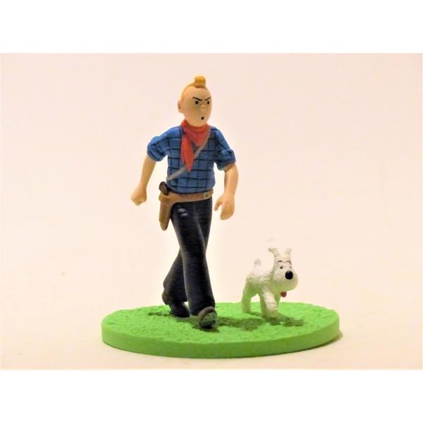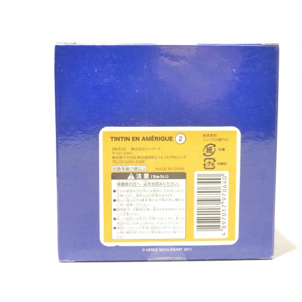 Cette figurine en plastique aux éditions Moulinsard est inspirée des personnages d'Hergé, Tintin et Milou et plus particulièrement de l'album "Tintin en Amérique". Cette version de Tintin est un import chinois, donc plus rare que la version française ( voir étiquette photo 3)